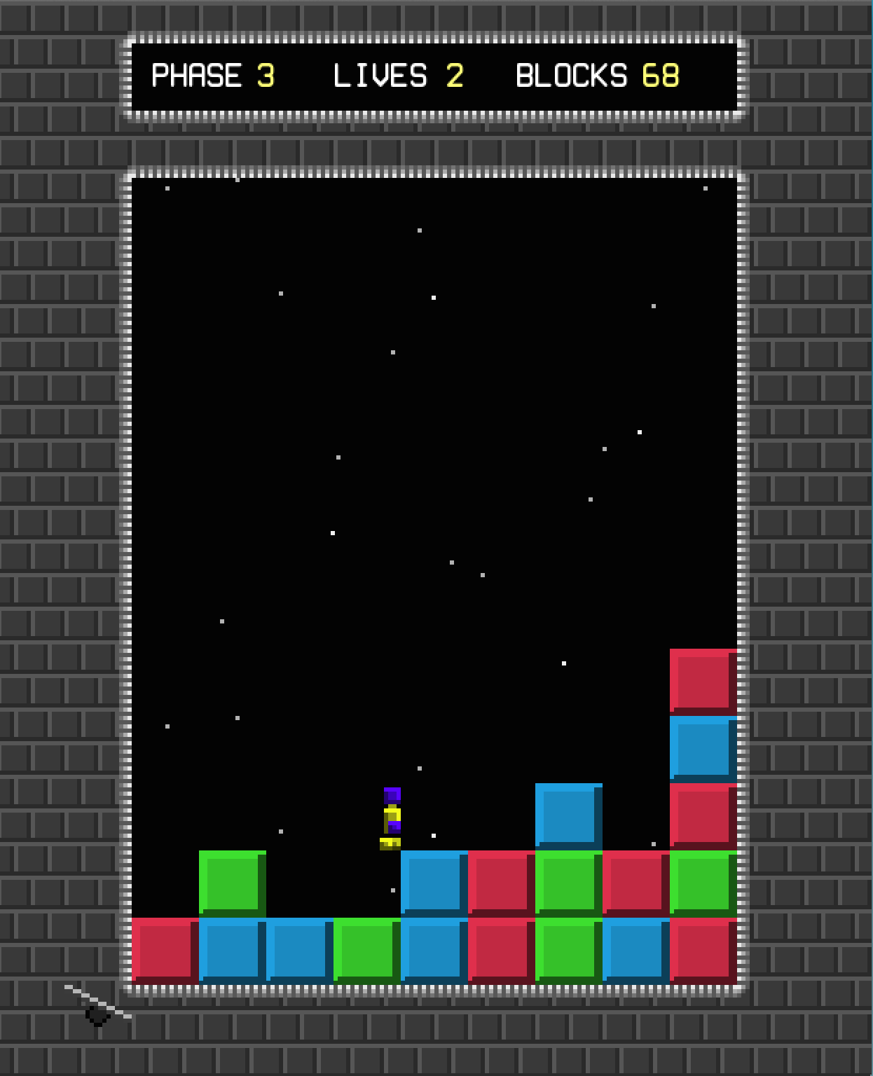 A hybrid of match-three and platformer. My entry for Ludum Dare 26 (Theme: Minimalism)